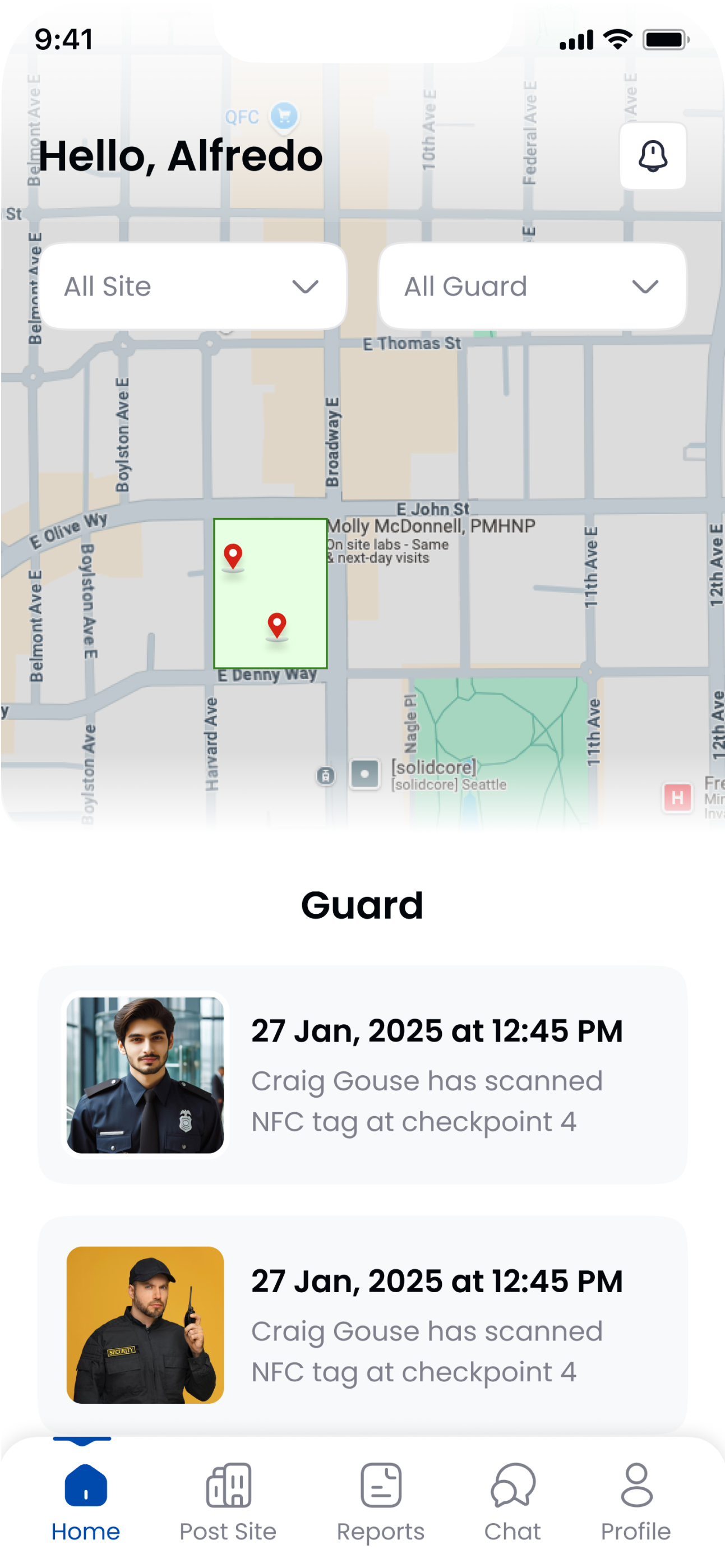 Scalable role-based platform enabling security companies to monitor guards, manage incidents, assign tasks, conduct NFC patrols & streamline operations