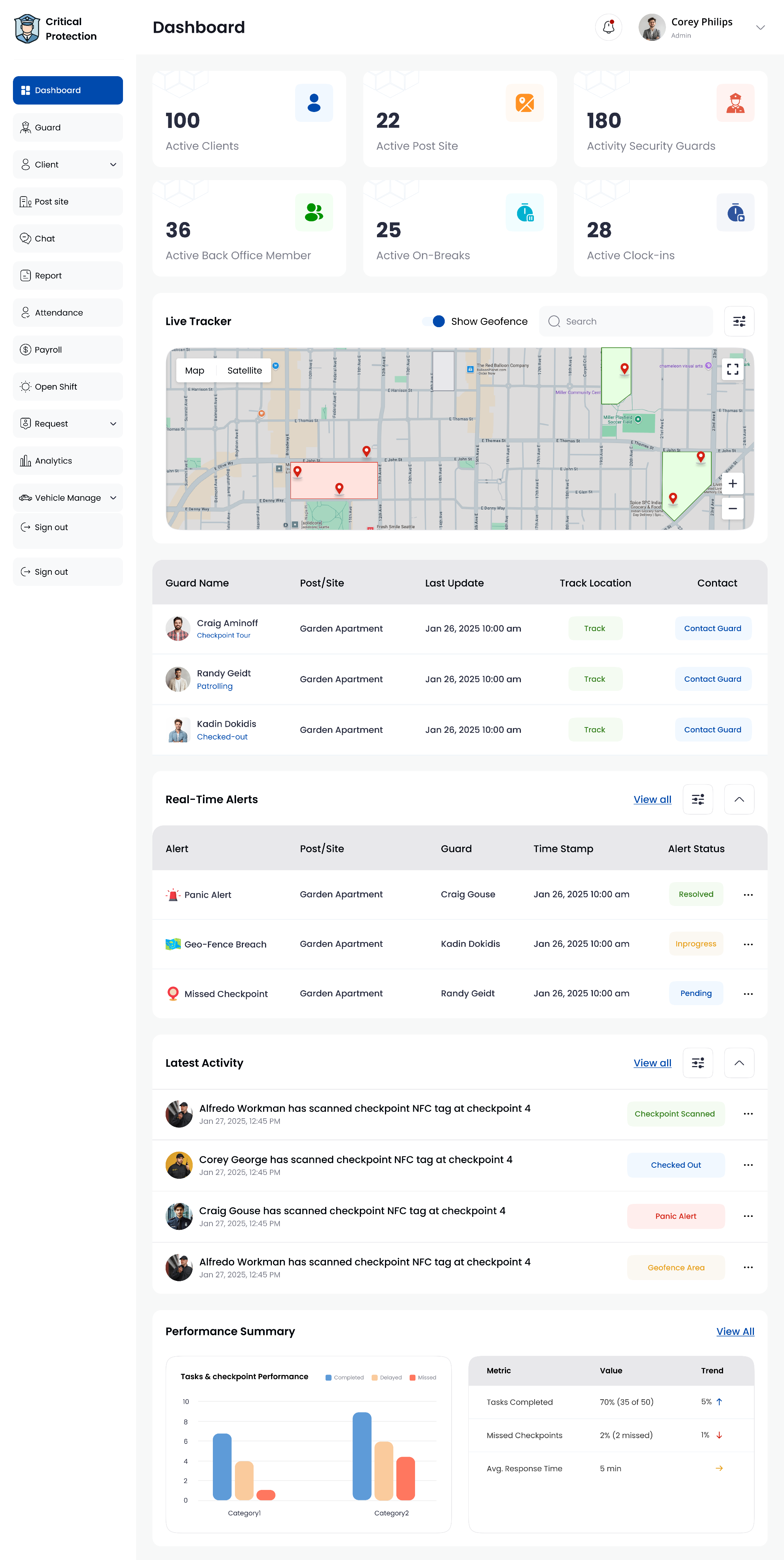 Admin Dashboard 路 Guard & Client Mobile Apps 路 End-to-End UX